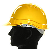 Moderner leichter Schutzhelm aus Polyethylen, mit Regenrinne, Gaubenbelüftung und seitlichen Adapterschlitzen zum Einstecken von Gehörschützern oder Gesichtsschutzschirmen. Aufgrund der 6-Punkt-Textilband-Innenausstattung mit Schweissband, zeichnet sich der Helm durch den sehr guten Tragkomfort und die ausgezeichneten Dämpfungswerte aus. Kopfweiten 53 - 66. EN 397.