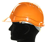 Moderner leichter Schutzhelm aus Polyethylen, mit Regenrinne, Gaubenbelüftung und seitlichen Adapterschlitzen zum Einstecken von Gehörschützern oder Gesichtsschutzschirmen. Aufgrund der 6-Punkt-Textilband-Innenausstattung mit Schweissband, zeichnet sich der Helm durch den sehr guten Tragkomfort und die ausgezeichneten Dämpfungswerte aus. Kopfweiten 53 - 66. EN 397.